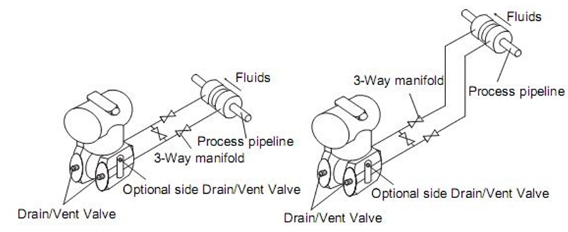 - Para el servicio de gas , incline el tubo hacia abajo (≥1/12) desde el transmisor hasta el proceso.